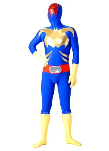 | Shown Color | Images Show Color | Detail | A full body covering catsuit with spandex adopted,the catsuit is blue,red and yellow colored with hood attached.Distinctive finger parts design. |
