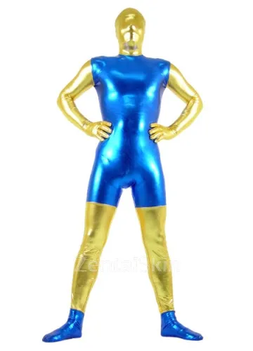| Shown Color | Blue,Gold | Detail | This kind of catsuit with shiny metallic material adopted,the suit is gold and blue colored.Back zipper closure.Distinctive finger parts design. |