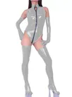 • Second Skin Wetlook PVC Dancing Bodysuit Sleeveless Turtleneck Leotard Costum Gloves Stockings 3-pieces Set