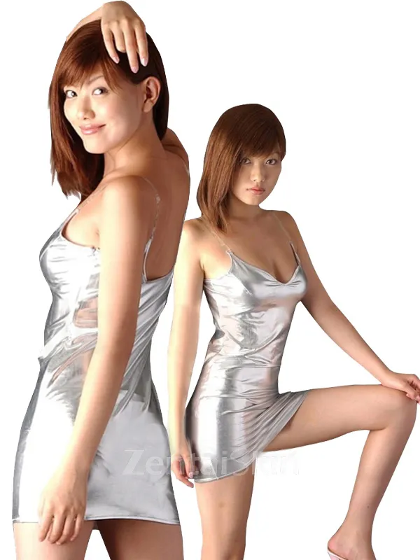 | Shown Color | Silver | Detail | Silver shiny metallic baby doll with spaghetti straps style. low bust and back style enhance the sexy curves. Custom-making service available |